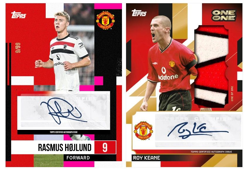 Neben den Consequential Autographs enthält das Team Set 2024/25 auch Consequential Relics – und bringt dich den United-Stars, früher und heute, näher als je zuvor. In Glücksboxen findest du die spektakulären, goldgerahmten Devils in Glory Autograph Relics – Unikate, die Autogramme und Relikte von heutigen Helden und Vereinslegenden kombinieren.