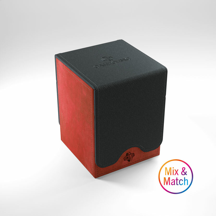 The convertible Squire gives easy access to a double-sleeved 100-card deck. The Convertible line is designed to present cards in new and unique ways. Remove the lid, attach it to the bottom or start tilting your box in a wide variety of ways. This elegant deck box is manufactured with Nexofyber material and protects cards inside with a soft microfiber lining. Powerful magnets keep it safely closed.