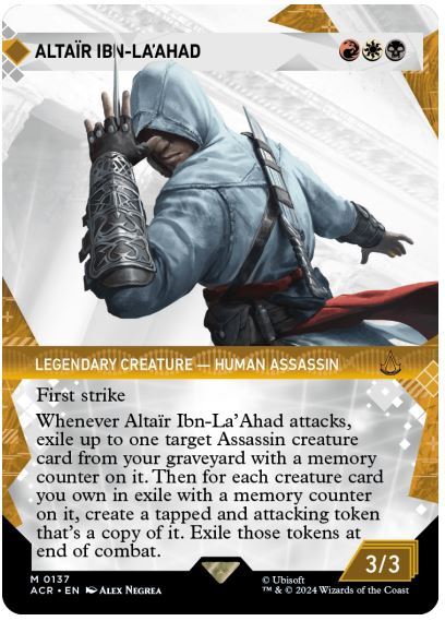- WAGE DEN SPRUNG – Assassin’s Creed kommt aus den Schatten, um sich Magic: The Gathering anzuschließen! Begleite deine Lieblingsassassinen, rüste dich mit tödlichen Waffen aus und sorge dafür, dass deine Ziele bald Geschichte sind