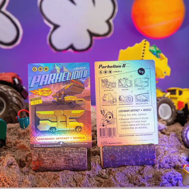Schnallt euch an, Speedster, denn ein brandneues Set von Aether Drifters-Rennkarten rast von der Ghirapur Grand Prix-Rennstrecke direkt zu euch nach Hause. Diese rasanten, beidseitig bedruckten Karten zeigen einige der actionreichsten Fahrzeuge aus Magic mit brandneuen Spielzeugauto-Illustrationen. Also startet eure Turbo-Booster und schnappt sie euch, bevor sie davonrasen.