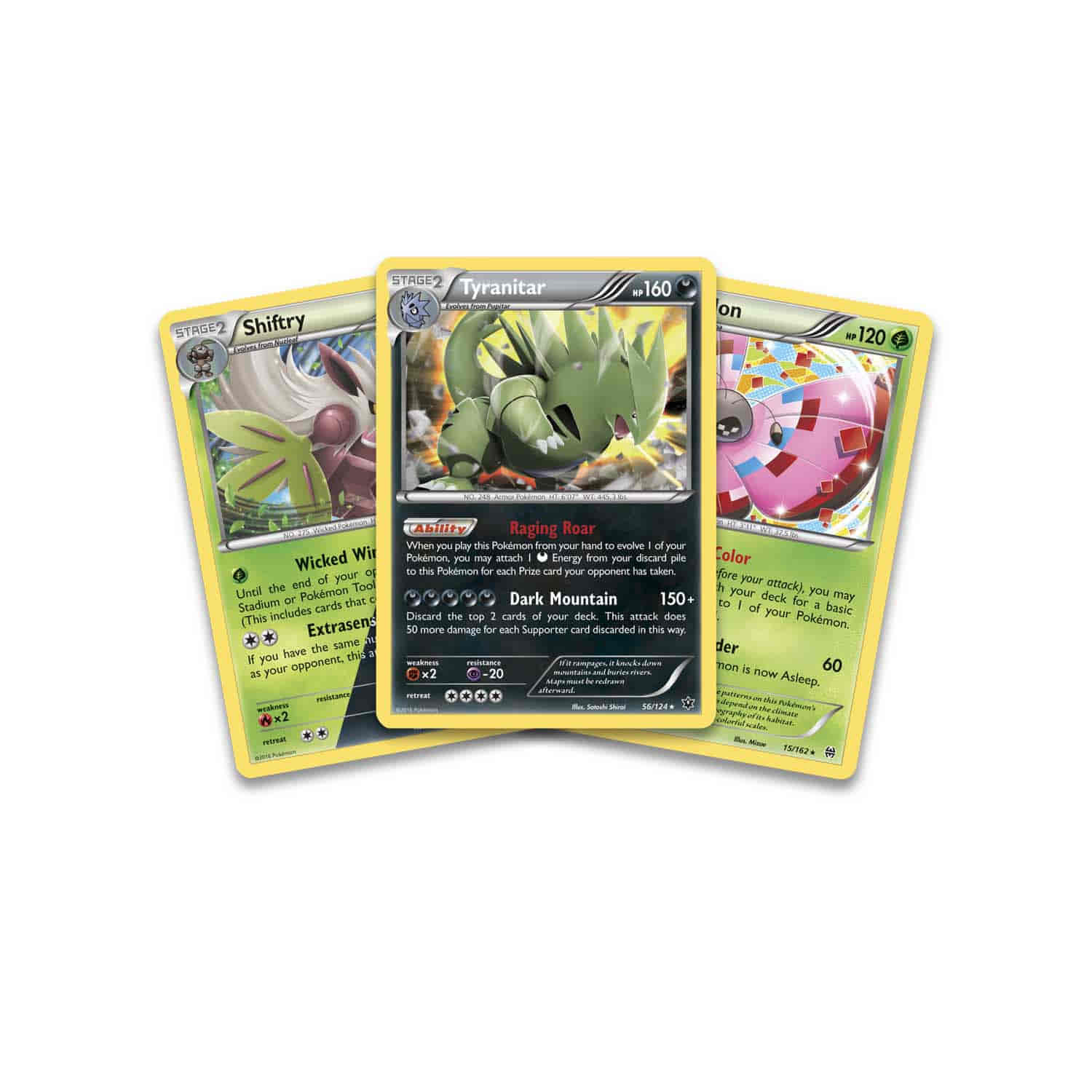 Three great Pokémon—stomp-tastic Tyranitar, devious Shiftry, and colorful Vivillon—make this Knock Out Collection a Pokémon party for all Pokémon fans and collectors! These three powerful Pokémon are just the thing for Pokémon Trainers ready to expand their collection and improve their battling skills!