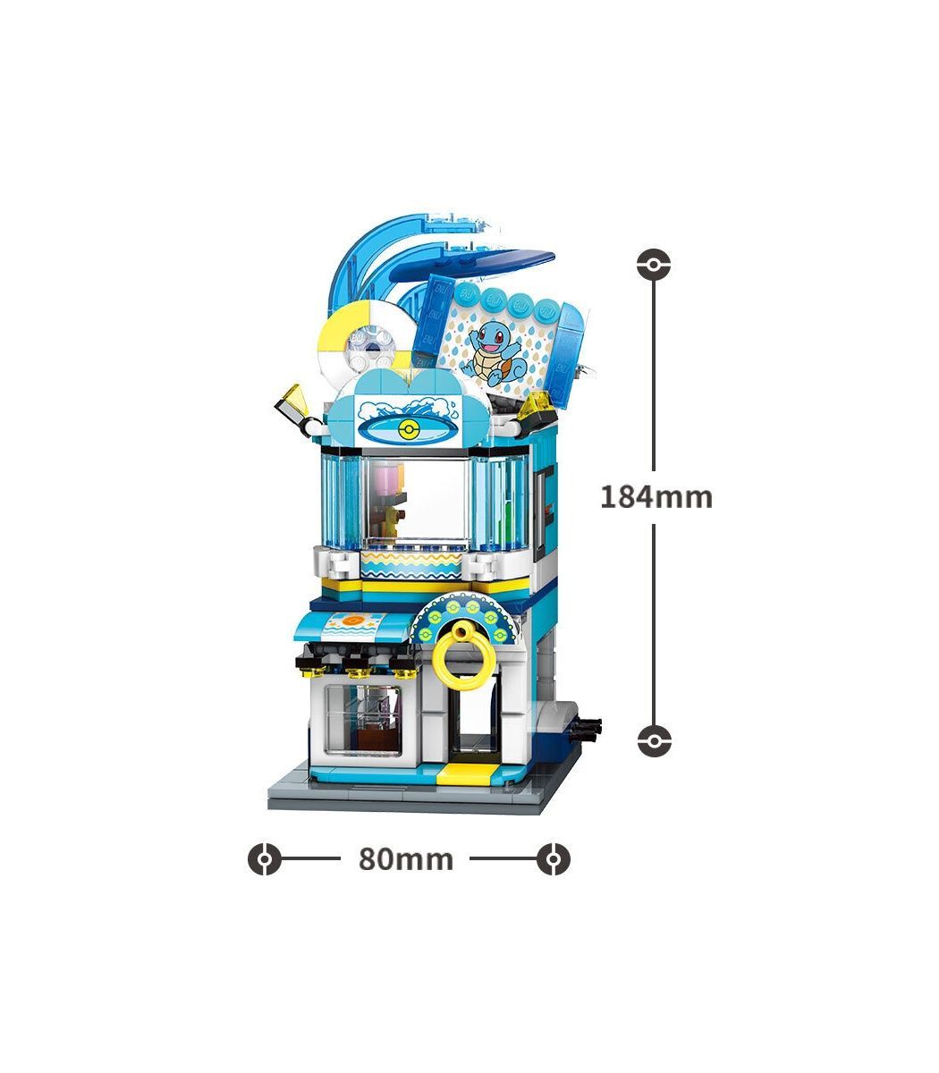 Keeppley City-Corner trifft Pokémon: Farbenfrohe Miniatur-Häuser mit unglaublicher Detailfülle. Jedes der vier Gebäude der Serie hat ein Cartoon-ähnliches Erscheinungsbild, das mit verschiedenen Pokémon-Charakteren zu interessanten Animationsszenen kombiniert werden kann. Besuche Squirtle in ihrem Laden für Schwimmausrüstung.