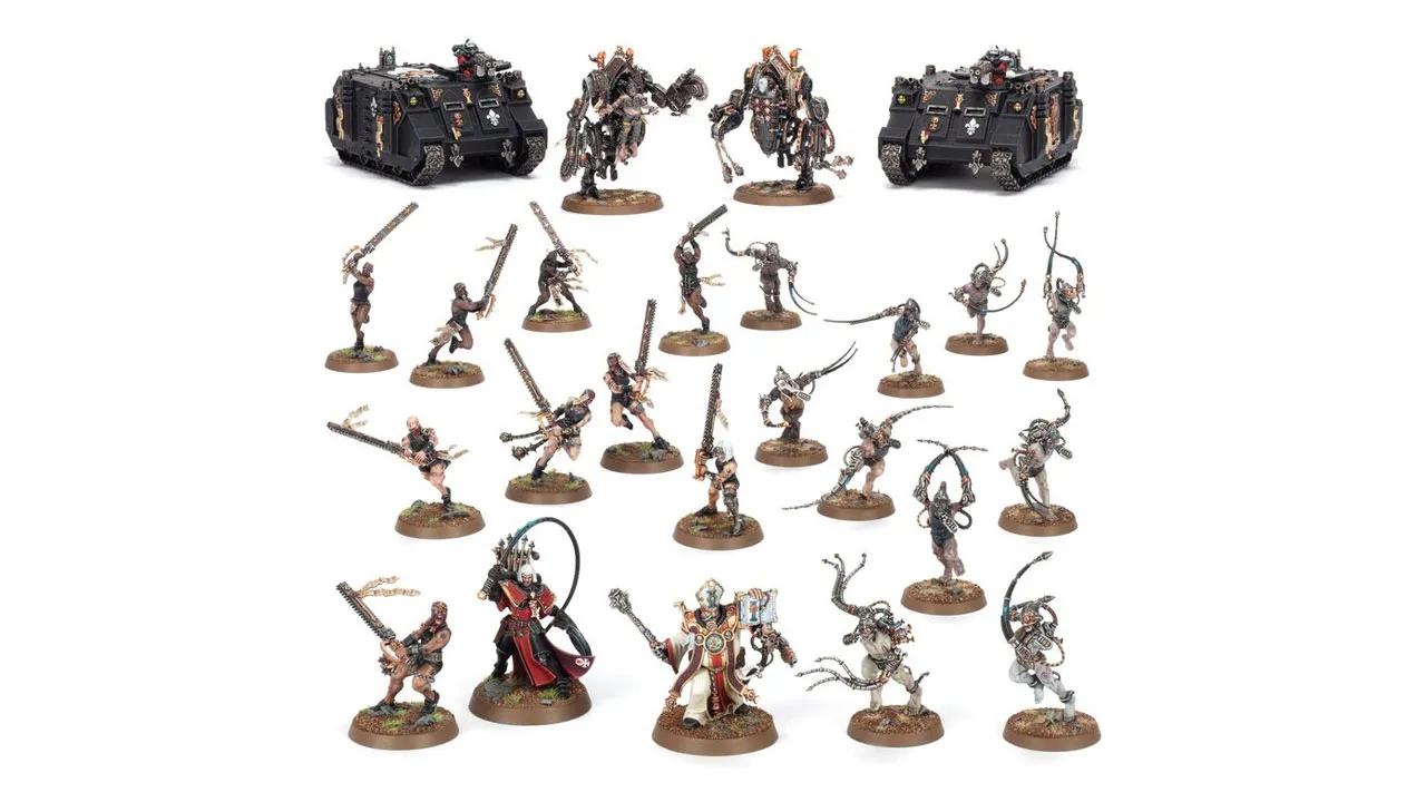 Hilf diesen abtrünnigen Schwestern mit diesem Box-Set, wieder in die Gnade des Imperators zurückzukehren. Die Penitent Crusade Host wird von einem kompromisslosen Ministorum-Priester in die Schlacht geführt, der die Repentia und Arco-Flagellants unter seiner Aufsicht inspiriert, während sie aus zwei Rhino-Truppentransportern aussteigen. Sie werden von zwei Penitent Engines begleitet, die von denen gesteuert werden, die noch eine Chance haben, für ihre Verbrechen zu büßen.